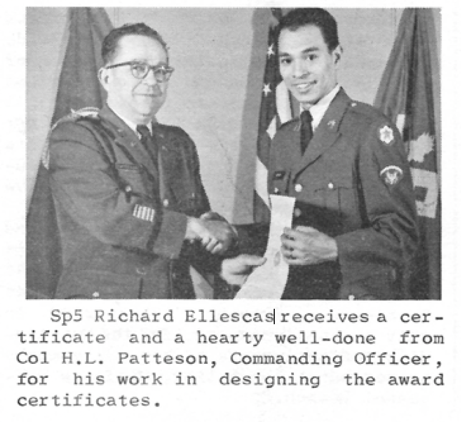 Richard Ellescas in the newsletter of the Army Pictorial Center, In Focus, April 1963.