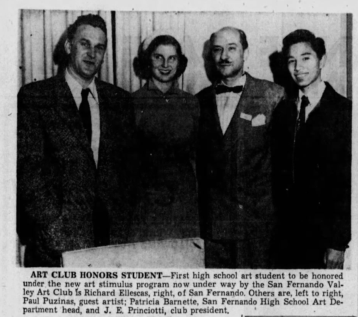 Ellescas after winning an art award at San Fernando High School. Valley Times, January 12, 1954.